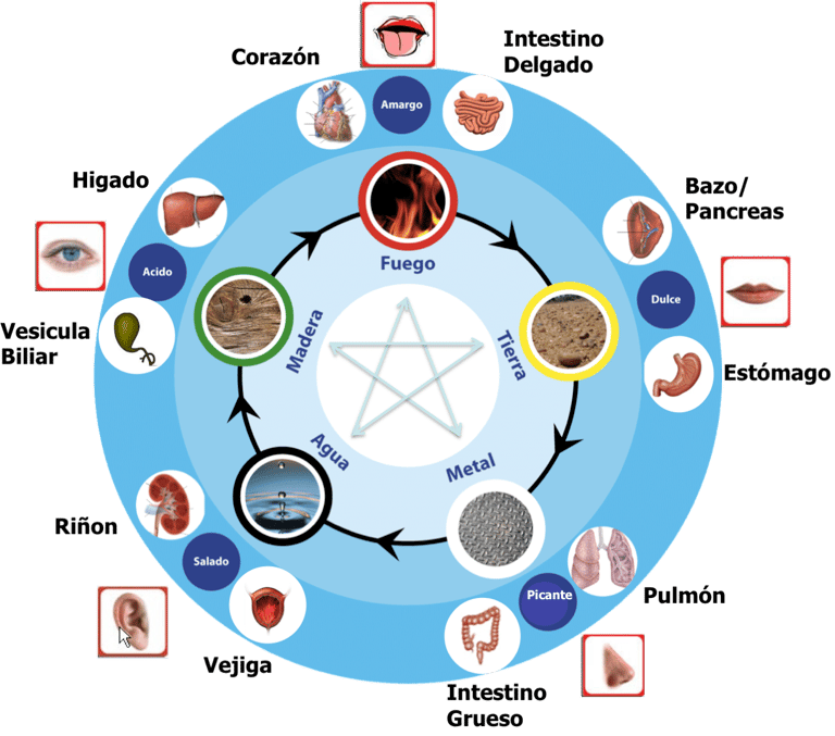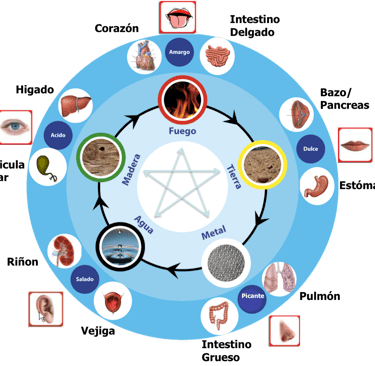 En Medicina china existen cinco emociones conectadas con cada uno de los elementos. Así, la alegría es fuego, la preocupación es tierra, la tristeza es pulmón, el miedo es riñón y el enojo es hígado. Siendo parte de los cinco elementos o movimientos, podemos concluir que las emociones están conectadas, una llevará a otra, alguna puede, en exceso, tapar a una emoción que está detrás o en deficiencia dejar lugar y paso a una emoción que la hunde aún más.